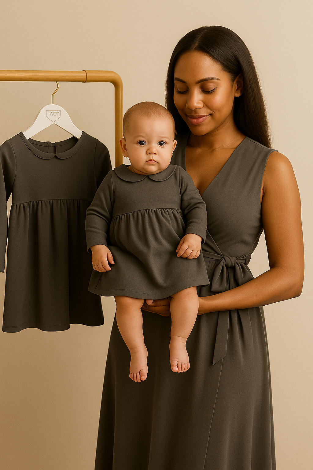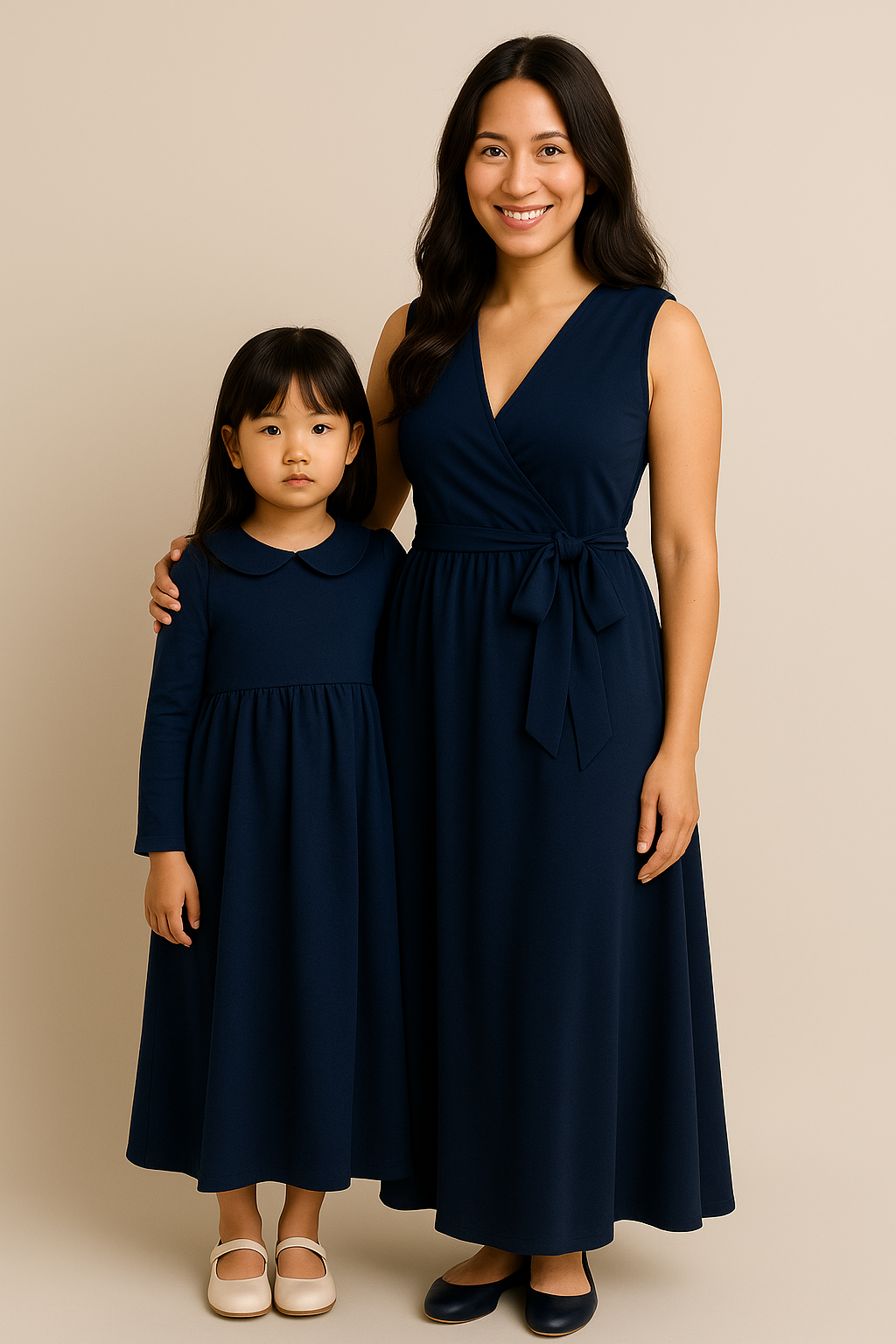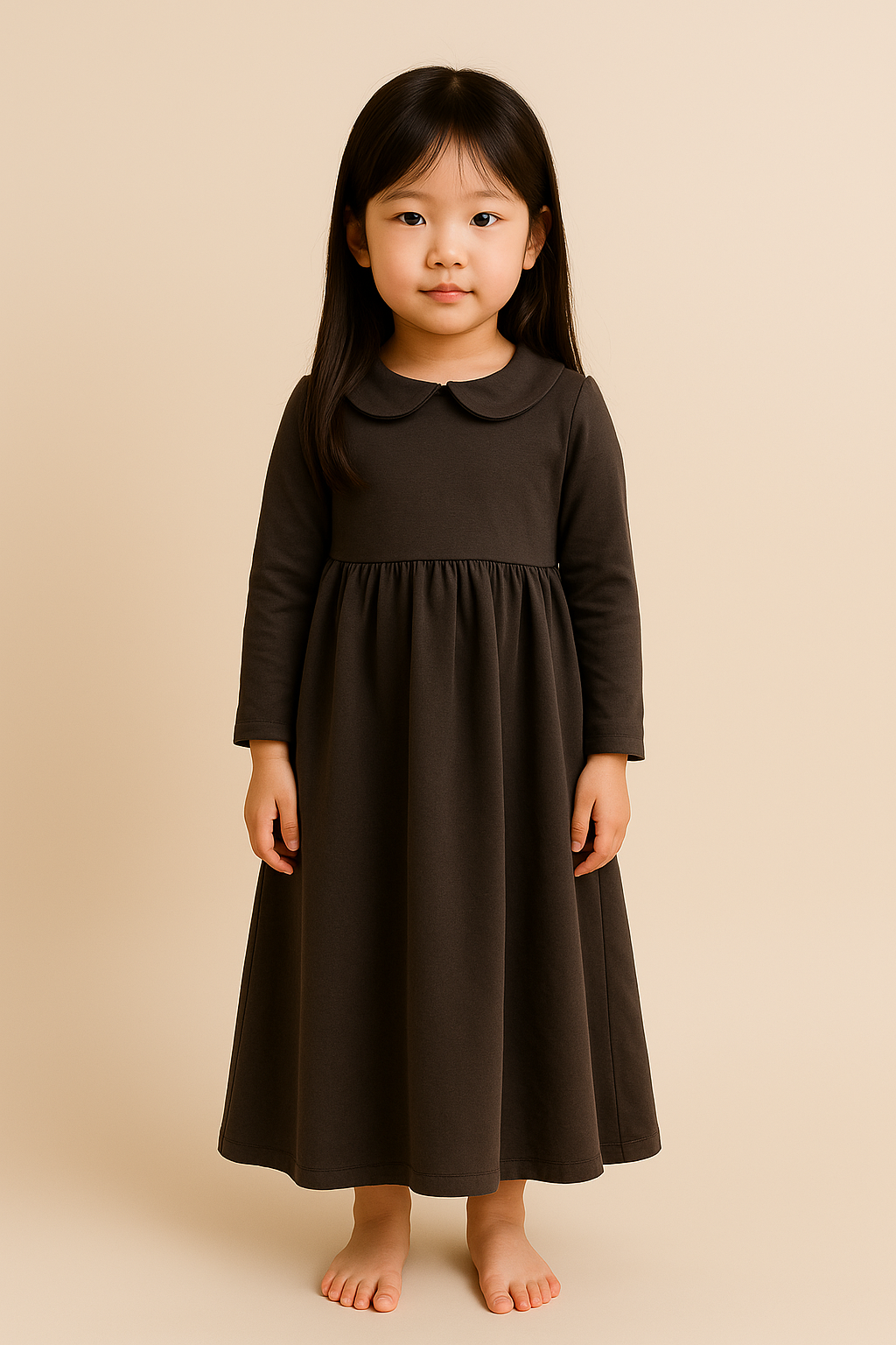 La robe à col Claudine Maison Bègue capture l’élégance simple des hivers d’enfance.
